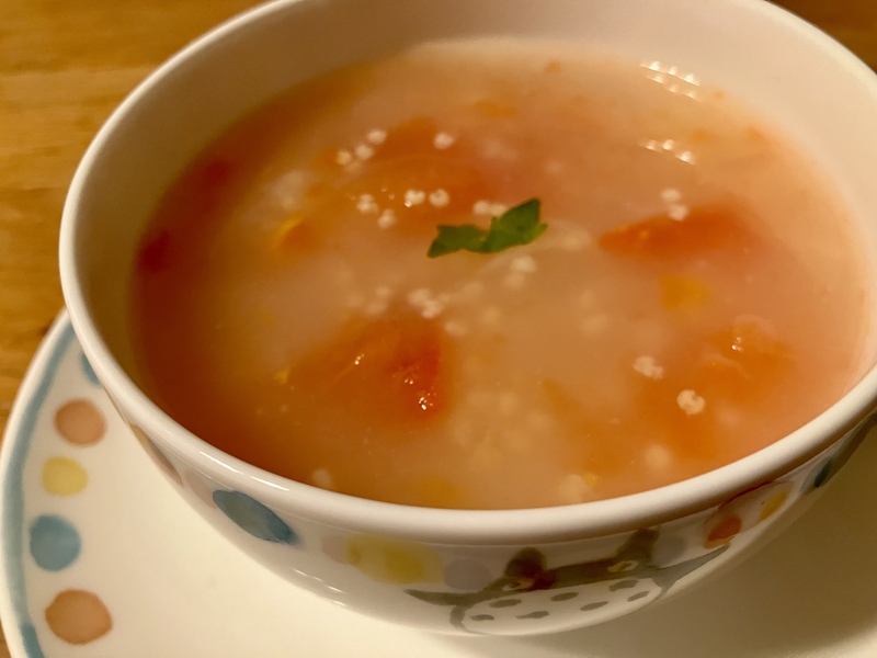 でも初めて作ったトマトともちきびのスープはしょっぱくて落ち込みました。